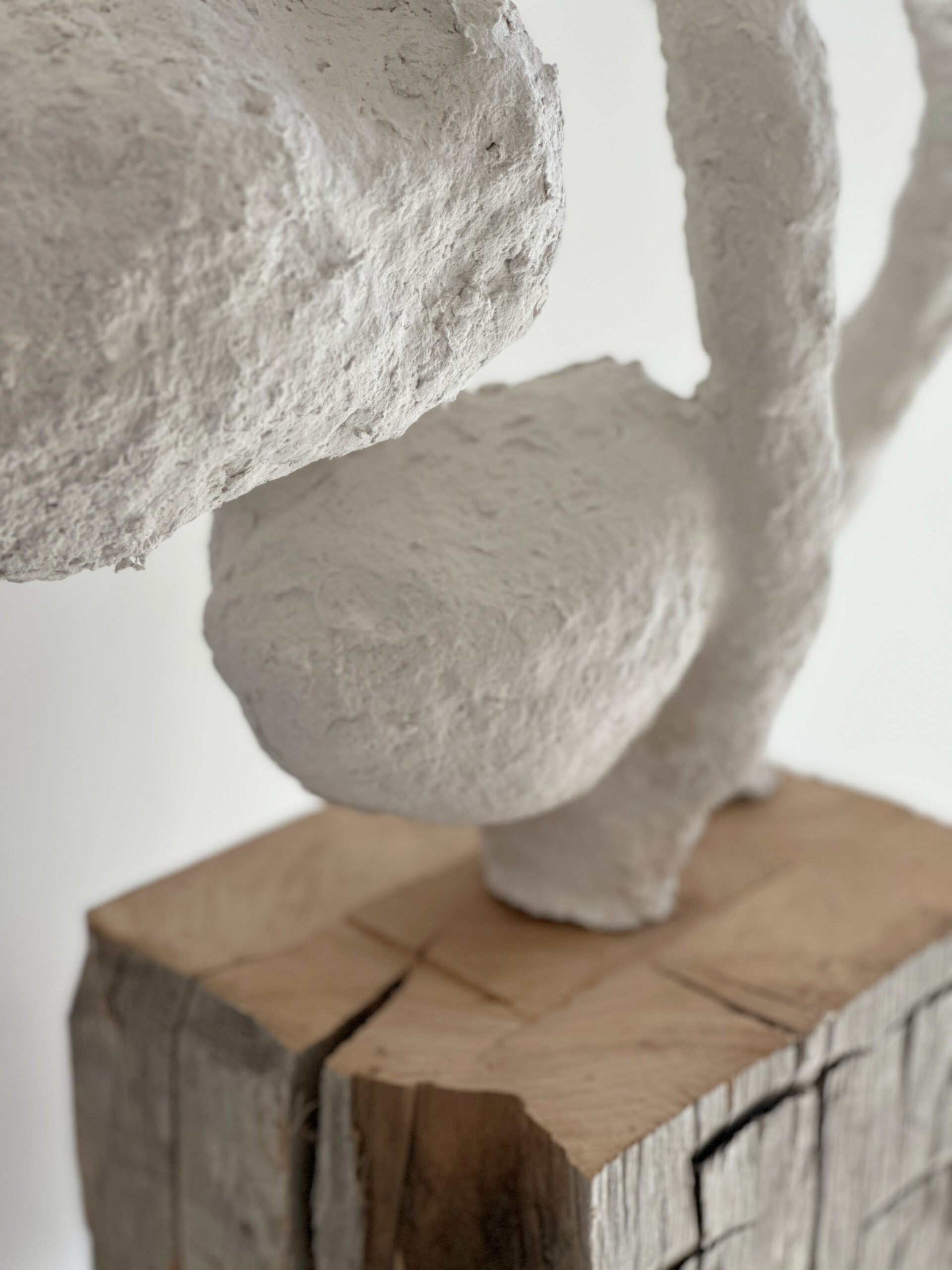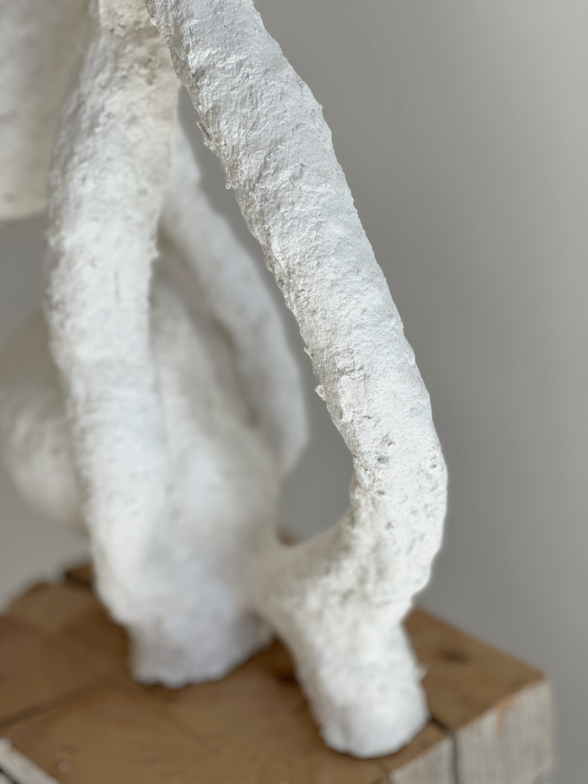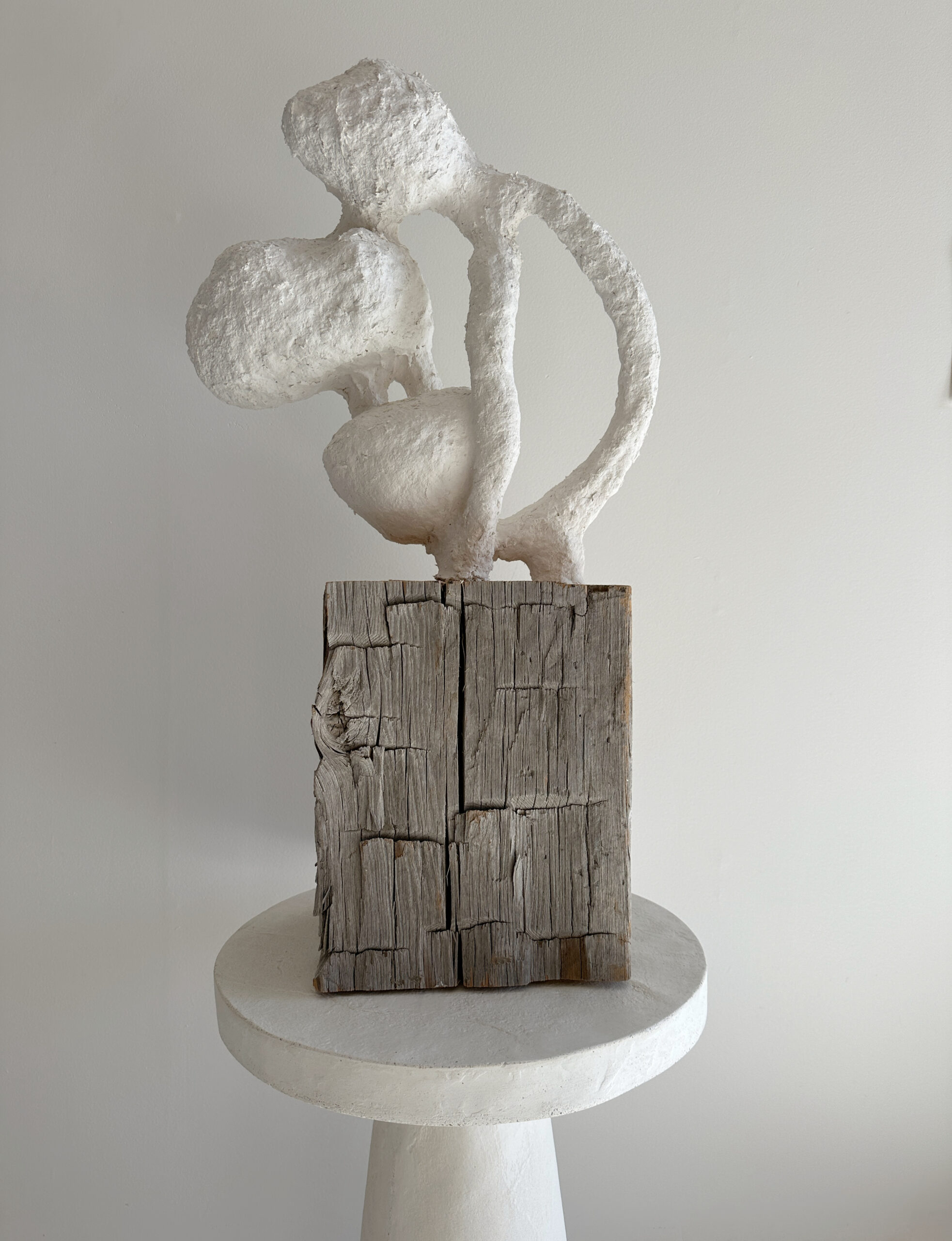 Wire and paper mache on vintage barn beam base