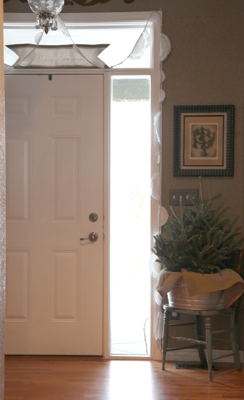Just lovely! So many pretty touches. Love your little tree in the metal bucket by the front door!