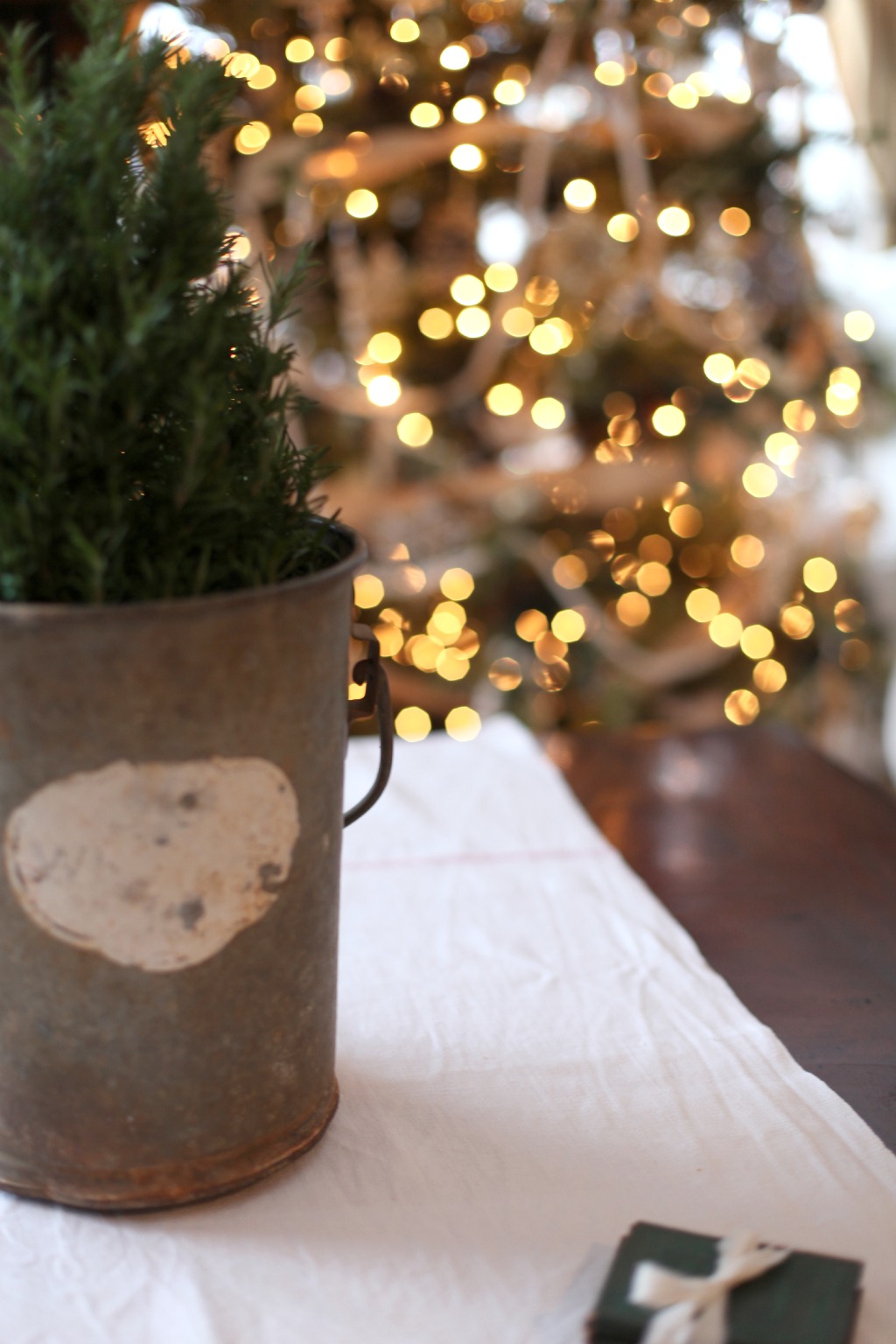 Lovely warm home! I had a similar window seat growing up and so love yours, very inviting to sit and gaze out. Your kitty is a cutie! Absolutely adore the cream/white little tree–would love to know where you picked that up. Thank you for sharing your home, Happy Holidays!